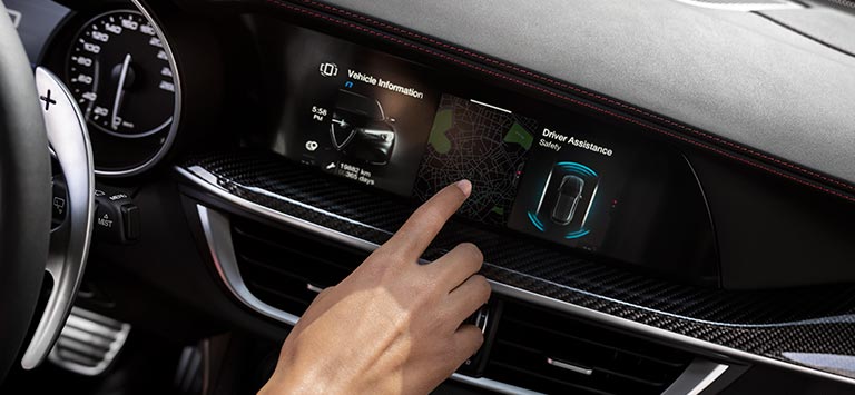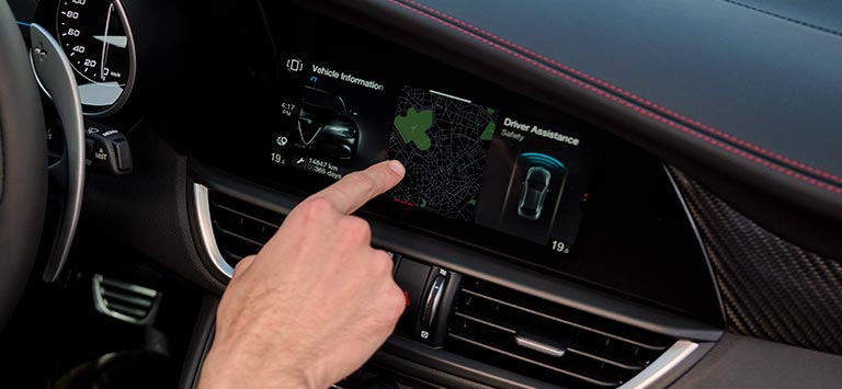 Alfa Connect-tjenestene holder deg i kontakt med bilen og omverdenen og sørger for tilkoblingsmuligheter med Android Auto™ og Apple CarPlay.